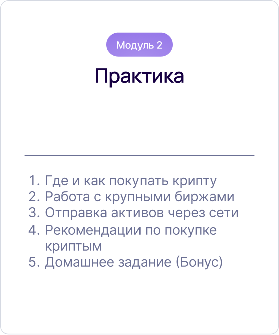 Получите всю необходимую базу в крипте и повторяйте сделки аналитиков из лаборатории на свое усмотрение. Начните понимать тренды и зарабатывать первые деньги на криптовалютном рынке